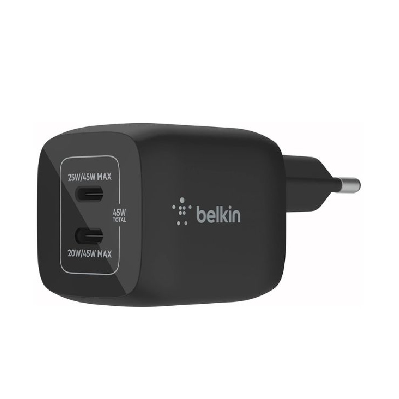 When both ports are in use, up to 25 W + 20 W is shared between devices.