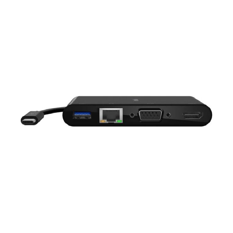 Simplify your multimedia and connect everything you need through one compact adapter. Compatible with devices that have a video-enabled USB-C® port, it’s the perfect tool for sharing your laptop or tablet screen with a crowd. The adapter supports Gigabit Ethernet, USB-A 3.0, VGA, and 4K HDMI, making it ideal for meetings, classrooms, and on-the-go presentations. The simple plug-and-play technology is compatible with Mac and Windows laptops and other USB-C devices.