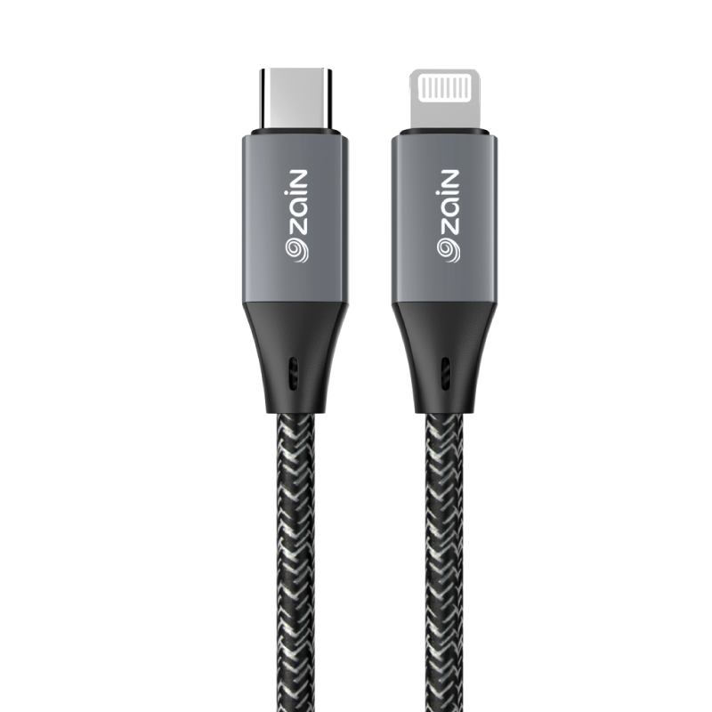 The Zain Charge Link LT USB-C to Lightning cable is a high-performance charging and syncing solution. Measuring 1.2 meters, it provides a perfect balance of convenience and flexibility. With a 27W Power Delivery (PD) rating, it supports fast charging for compatible devices, including iPhones and iPads, ensuring rapid and efficient power delivery. The cable features a sleek black-and-white design and robust construction for long-lasting durability. It is ideal for home, office, or travel, offering reliable connectivity and fast data transfer between USB-C and Lightning devices.